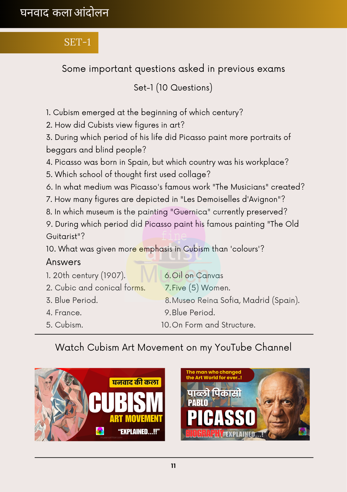 This e-book covers everything you need to know about Cubism—from its origin and development to its key characteristics and major artists. With well-organized explanations and carefully selected multiple-choice questions (MCQs), it serves as an excellent resource for quick revision and self-assessment.
